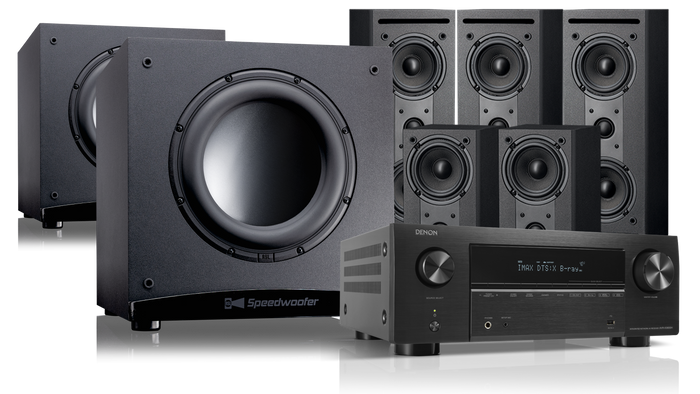 RSL's LIMITED TIME 5.2 system bundles showcasing top AVRs from Denon and Onkyo. These AVRs offer abundant power, and independent sub-out channels for optimizing dual Speedwoofers!